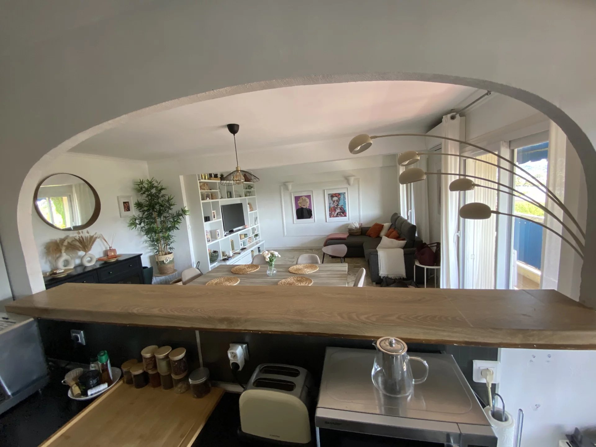 In the heart of the city next to all the commodities you will find on the pen ultimate floor a one bedroom apartment that enjoys a rare brightness. Not overlooked we sell it furnished. In a secure building, the apartment displays an entrance with a cupboard from the ceiling to the ground, a living area bathed with sun thanks to four large windows and a double south and east direction offering an open outlook. You will also enjoy an american equipped kitchen whose renovation dates from end 2024. Double glazing, A/C, new hot boiler, reinforced door, electrical diagnosis without any anomalies and excellent energy performance for maximum comfort. This apartment also boasts a very nice ceiling height that adds volume and a certain charm to this property, ideal for a main residence, secondary home, or a rental investment, as the co-ownership does not prohibit seasonal rentals. -